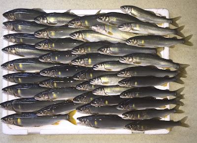 暫く待つと親父さんが⚪️⚪️さんと小生を呼び、年券とお釣りを貰った。その後オトリを選んでオトリ缶に入れる。